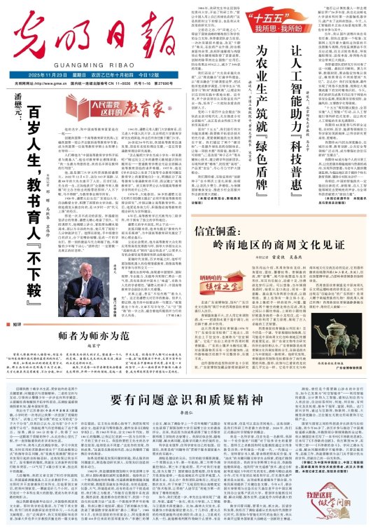 光明日報(頭版):【“十五五”我所思·我所盼】為農(nóng)業(yè)生產(chǎn)筑就“綠色盾牌” 講述人:中國工程院院士、貴州大學(xué)校長 宋寶安